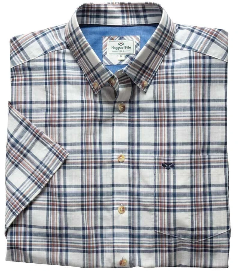 Short sleeve and boasting a four colour check, our Girvan shirt is tailored from 100% cotton slub fabric, giving a light, soft feel and allowing free circulation of air though the weave, keeping you cool as well as adding a subtle texture to the fabric.