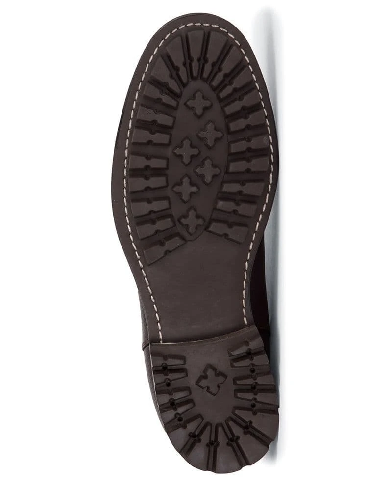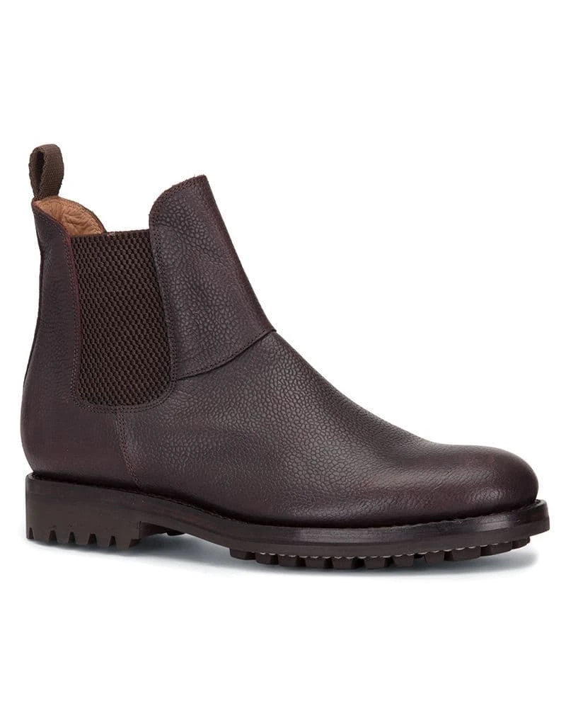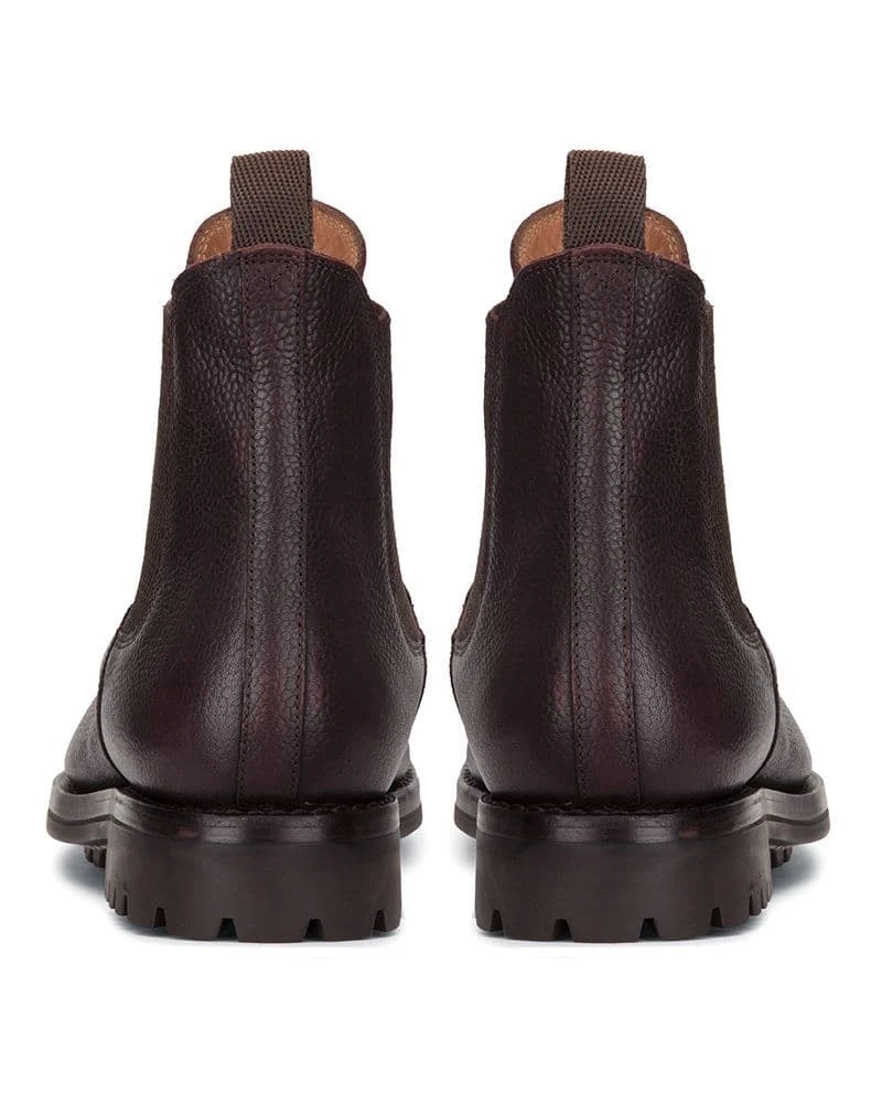 Build on traditional manufacture techniques this sturdy Chelsea boot is hand crafted from a textured grain leather and features a leather lining, textured elastication panels and a rugged sole. Constructed using the goodyear welted method, the rugged good looks and practical versatility of the Helmsdale boot are difficult to match.