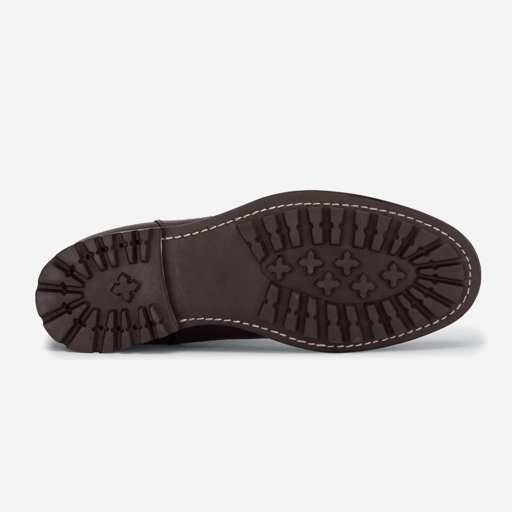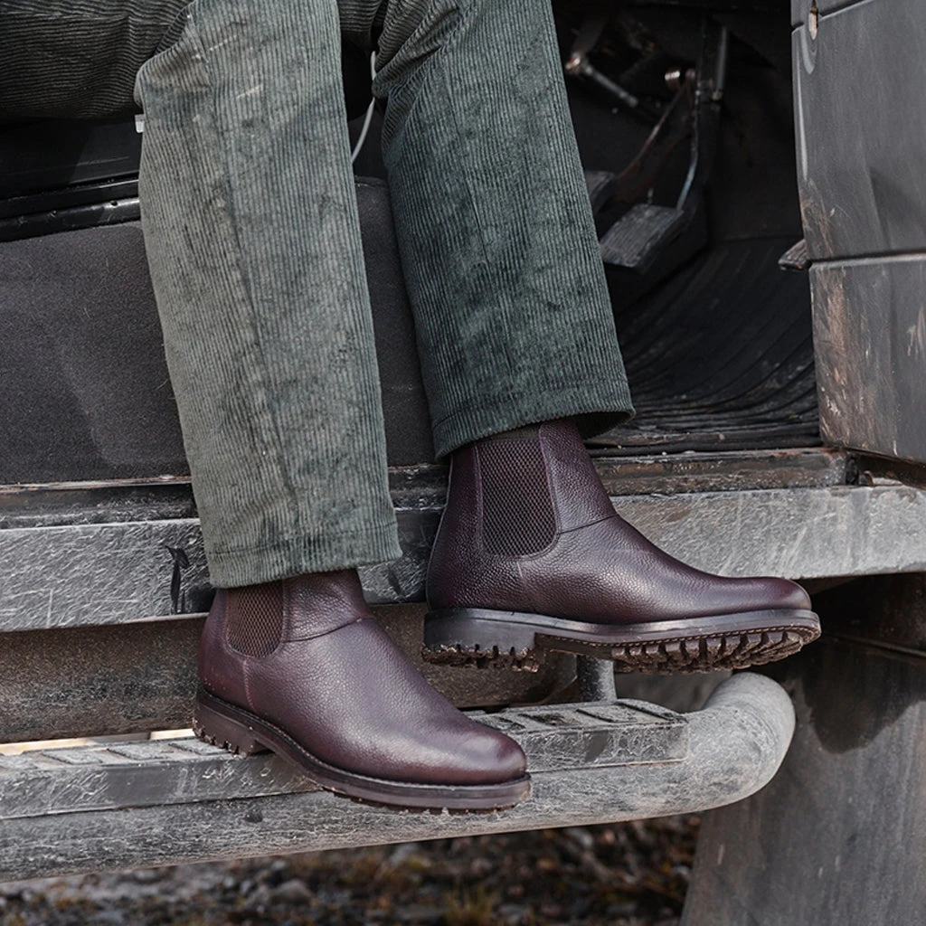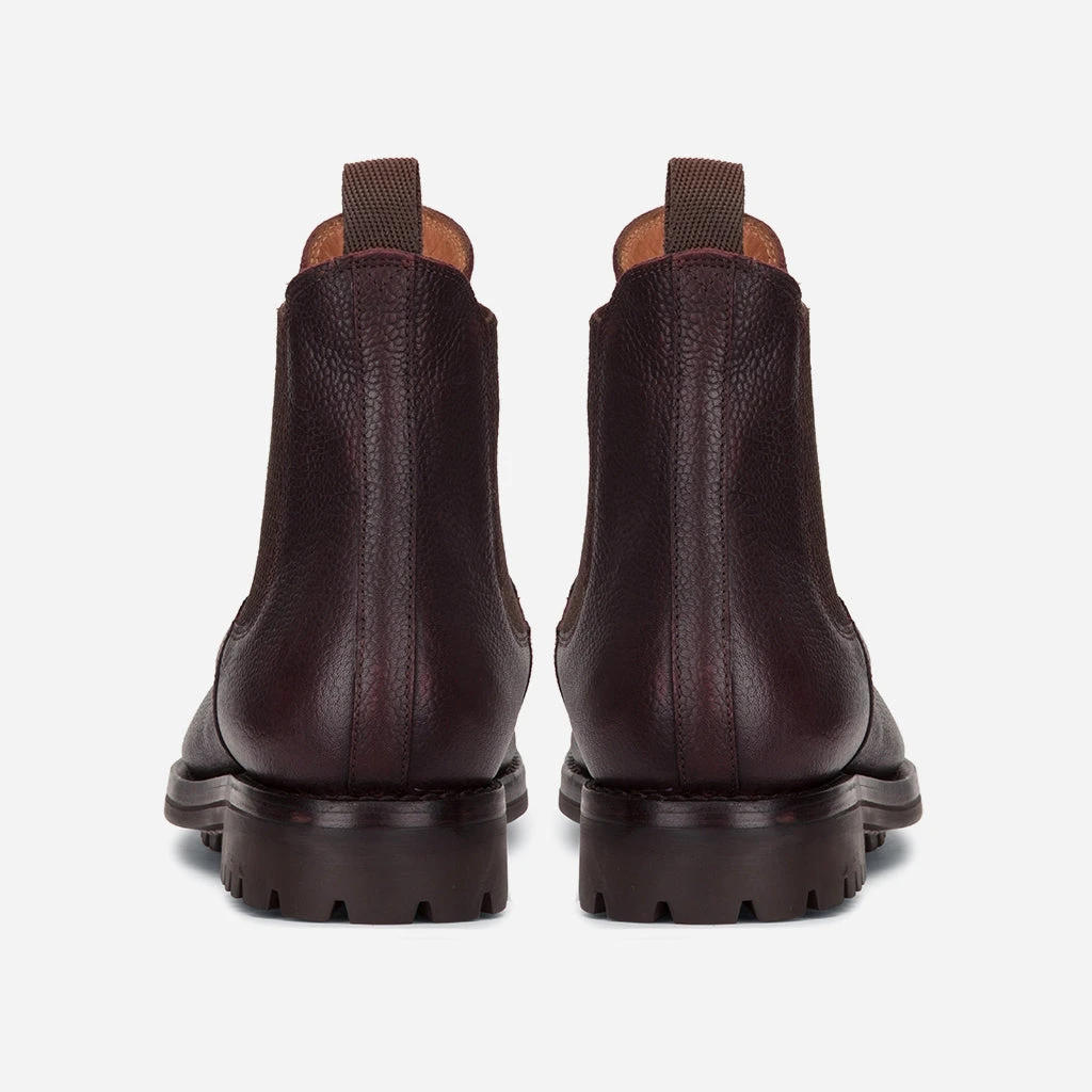 Build on traditional manufacture techniques this sturdy Chelsea boot is hand crafted from a textured grain leather and features a leather lining, textured elastication panels and a rugged sole. Constructed using the Goodyear Welt method, the rugged good looks and practical versatility of the Helmsdale boot are difficult to match.