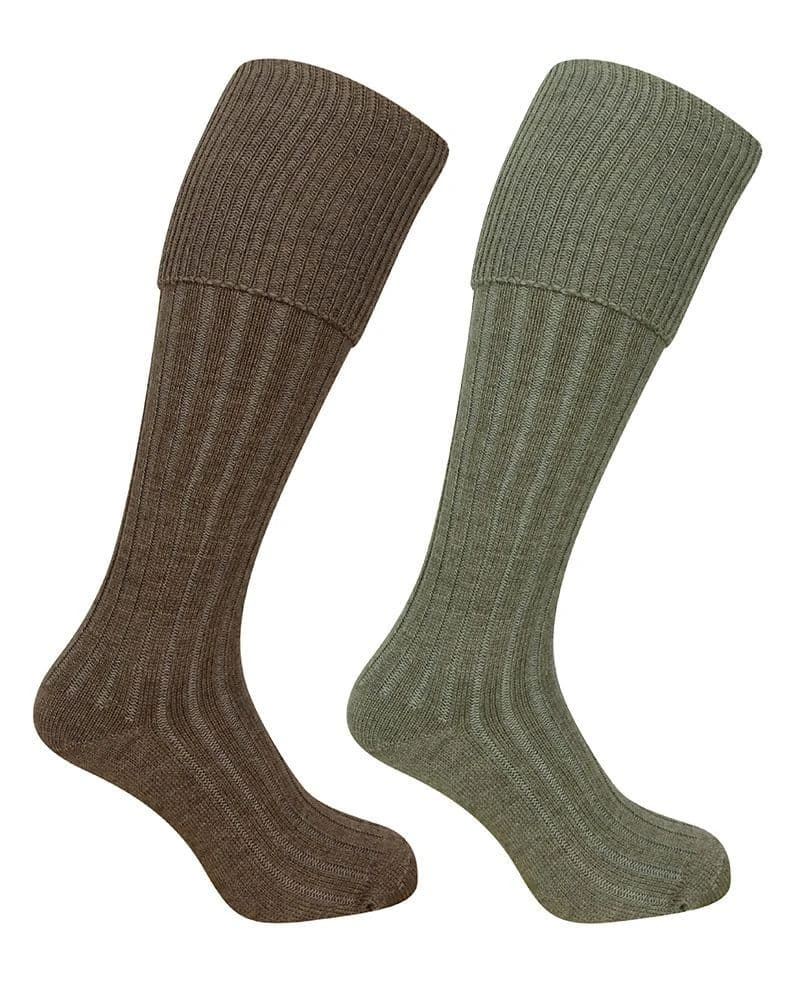 Ideal for those who prefer discrete, tonal Shooting socks below their breeks, or for extra warmth and support worn under your boots, the ribbed knit country sock is ideal for that extra layer of warmth and protection for those out in the field – in two packs giving you extra value and two great alternatives. Made from lambswool in combination with technical fibres for maximum performance.