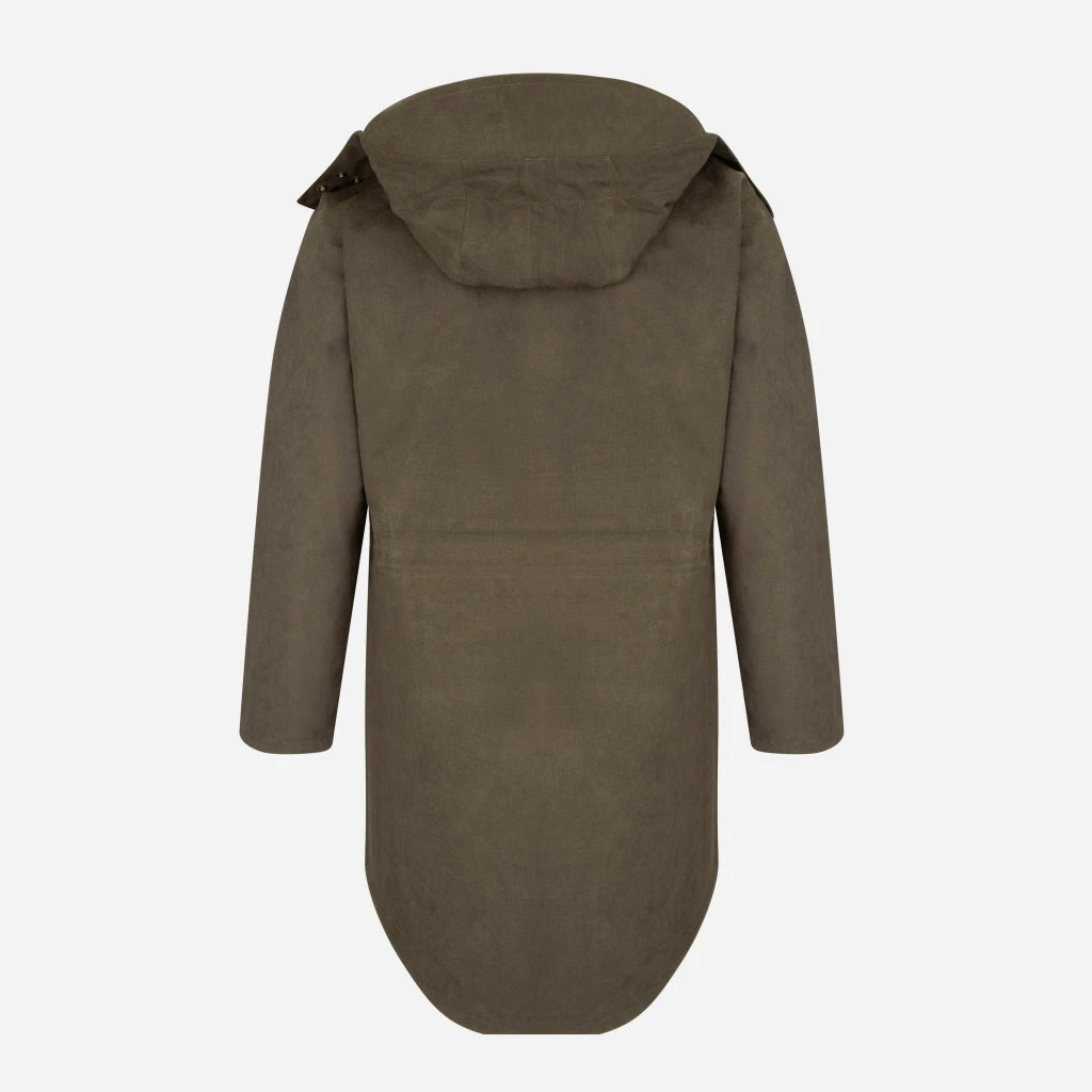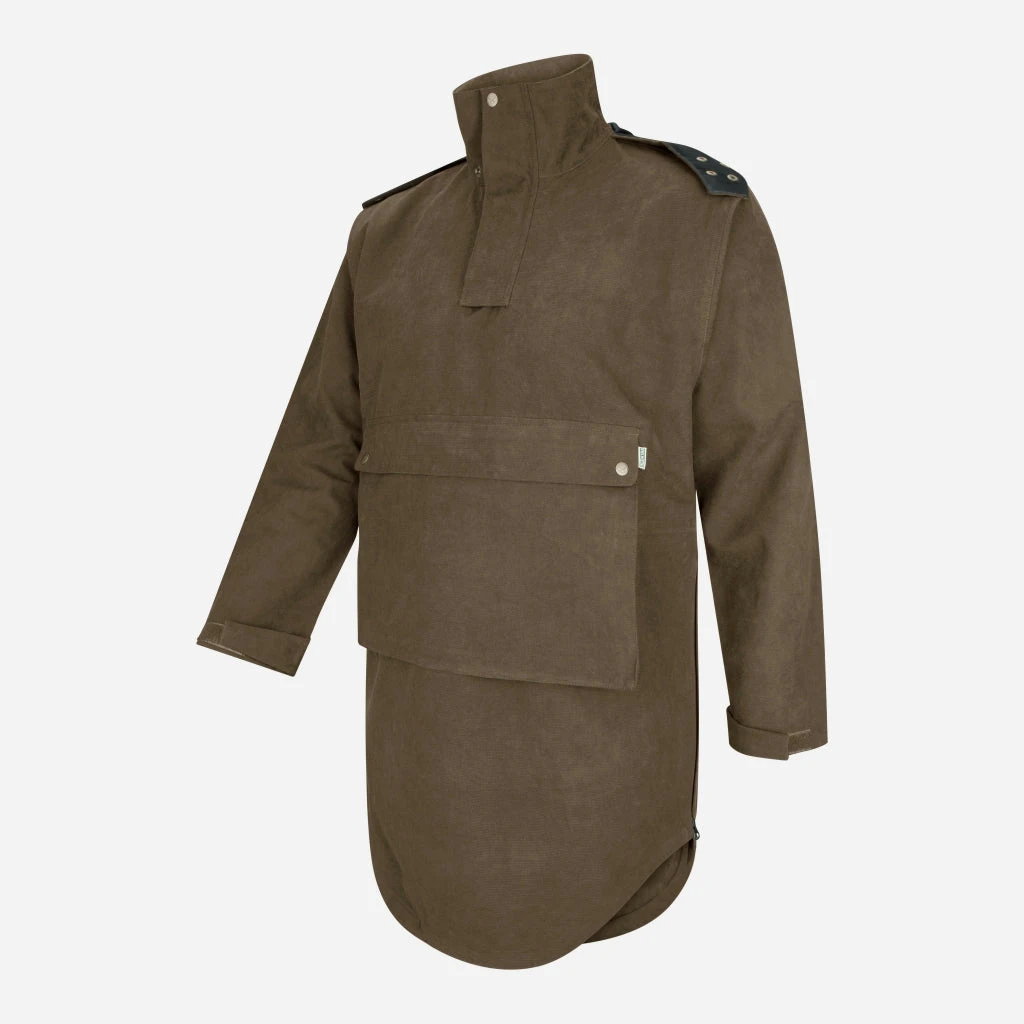 Designed to provide ultimate protection in the wilds of the Scottish Highlands, it’s made to be long and tough to provide protection for when you’re laying on the ground observing or crawling on your belly. But it’s not restrictive – side zips that run from the bottom of the garment up to the waist allow you to adjust the fit and also act as vents. The long scooped back covers your backside, so great for keeping dry when sat down in the wet.