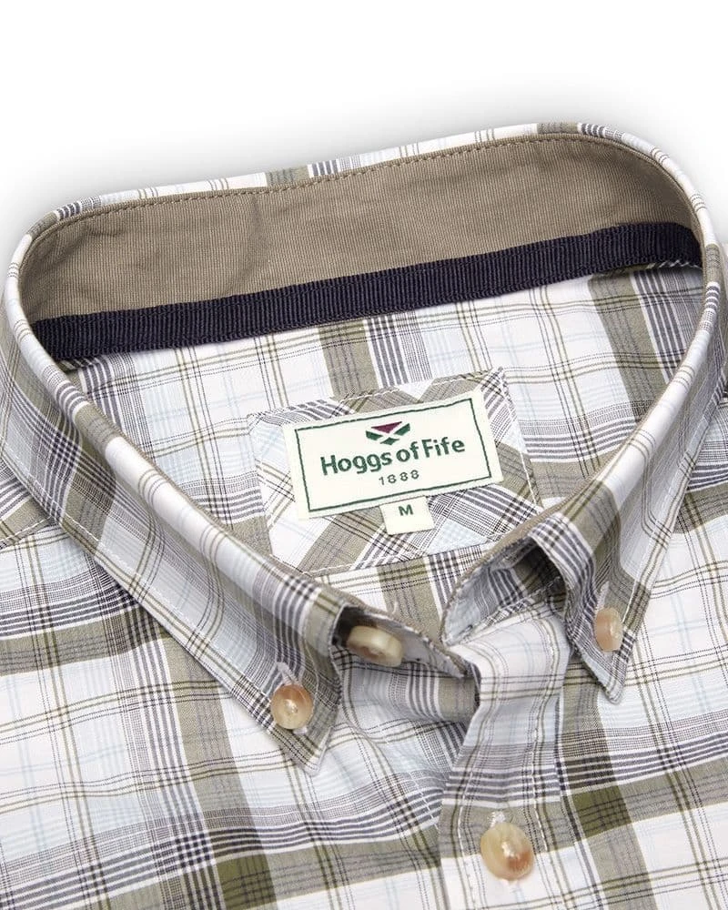 Hoggs of Fife brings the best out of a simple, tonal check with use of a cotton poplin fabric for ‘Tresness’. This facilitates a smooth, flat surface and a lightweight, breathable feel, which accentuates the subtle colours.